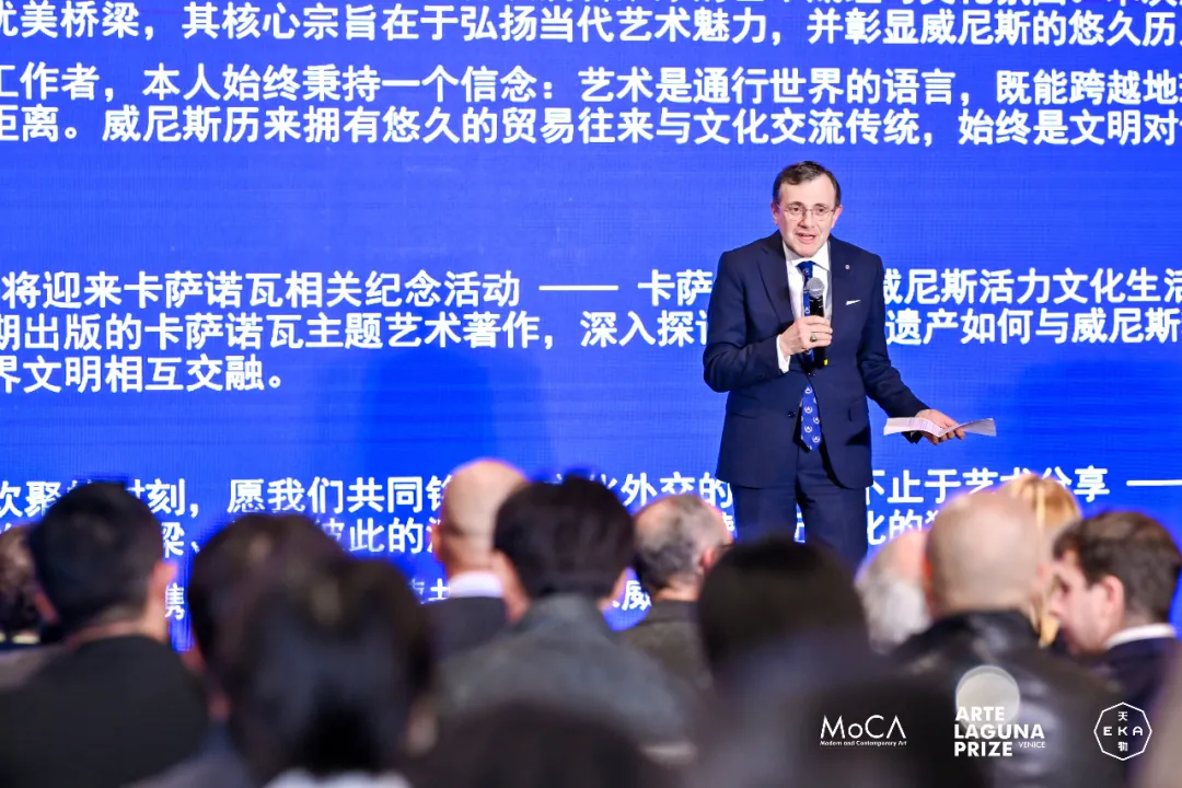 意大利驻沪总领事馆文化专员莫芮迪表示,2006年创办的拉古纳奖以扶持艺术人才、推动国际对话为使命,今年恰逢二十周年,亚洲首展落地上海是奖项全球布局的里程碑,更是中意文化交流的契机,延续了马可·波罗时代的文明对话。