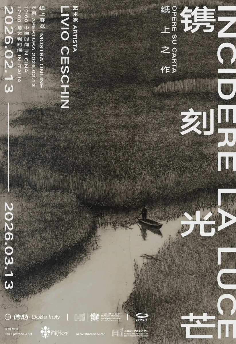 由德必意大利、中意设计交流中心和国际文化交流发展协会主办,佛罗伦萨市政府、上海设计之都促进中心支持的意大利维罗纳美术学院教授Livio Ceschin线上版画展《镌刻光芒——纸上之作》于意大利时间2026年2月13日12时上线。