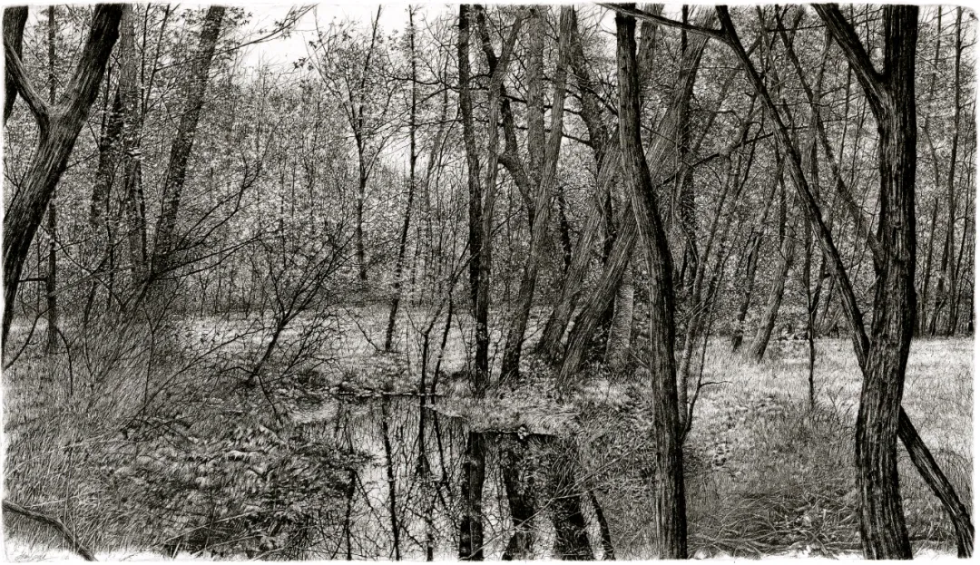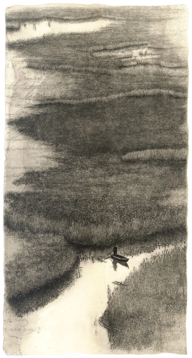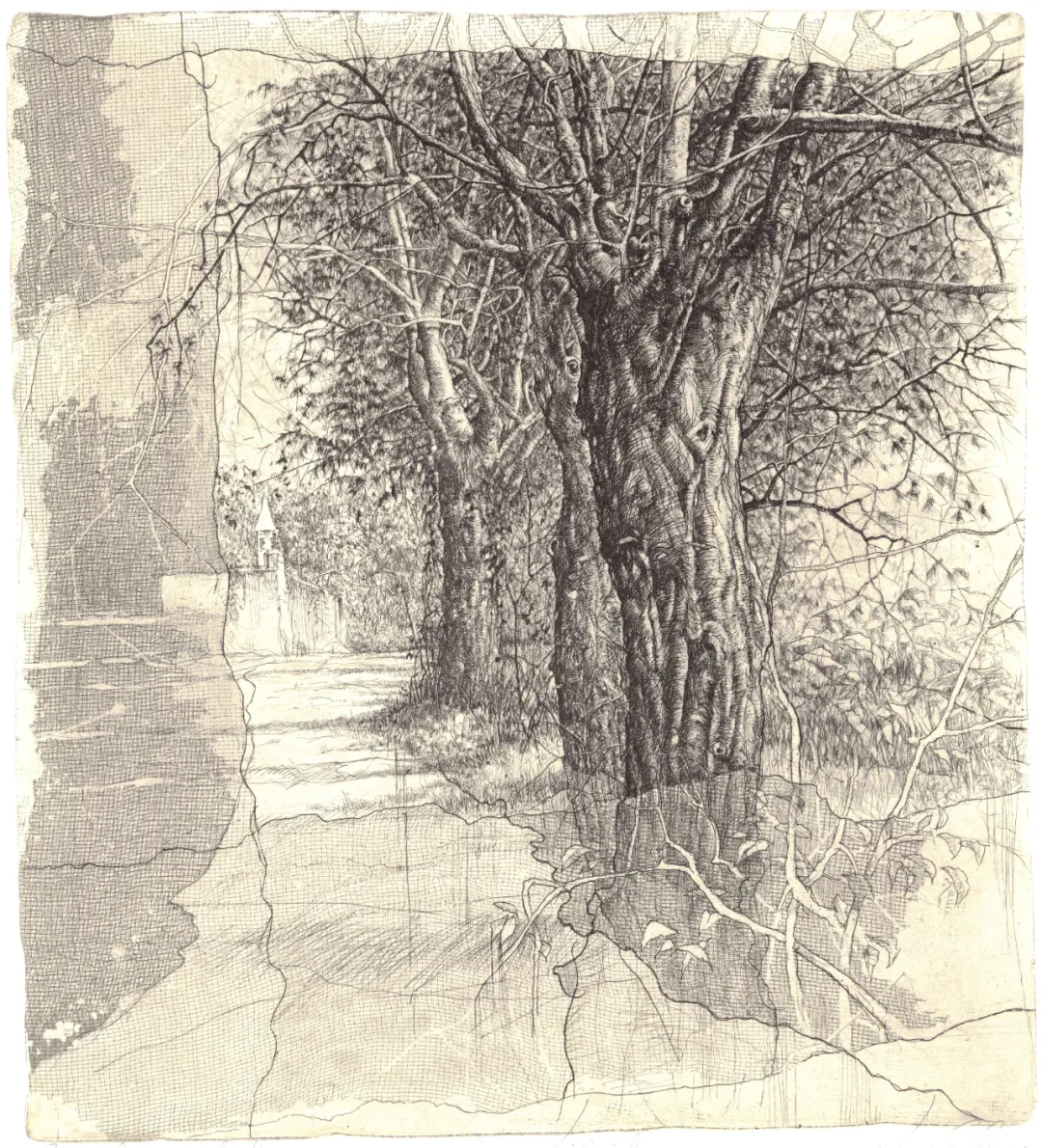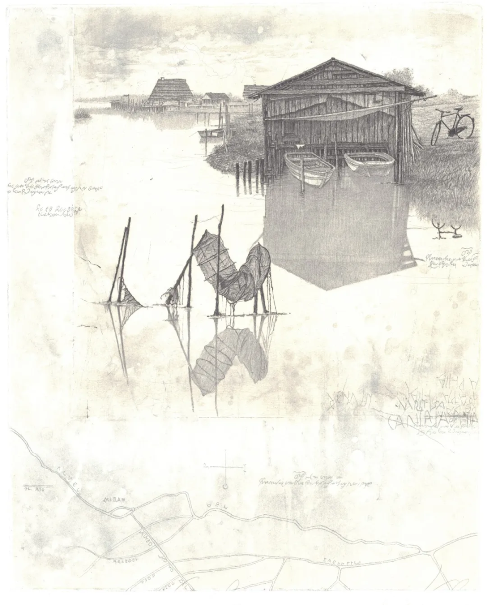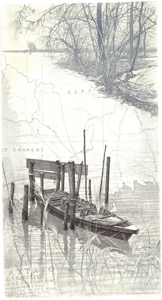 本次展览《镌刻光芒——纸上之作》所呈现的作品,以直接而真切的方式展现了艺术家敏锐而细腻的观看能力。在被白雪覆盖的林间、沿海松林、被遗弃并散落于威尼斯泻湖中的船只之间,一种原初的自然对话悄然浮现——既贴近日常,又蕴含着静默而深层的精神性。