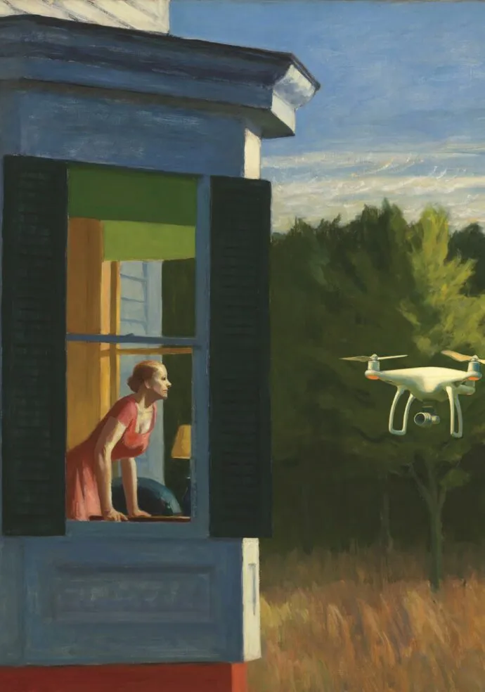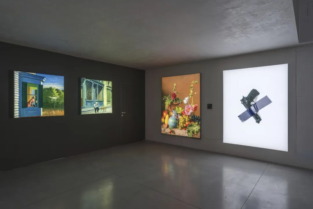 展出的作品围绕三个相互交织的主题展开:神圣作为西方文化中应对死亡的机制;技术作为回应当代孤独的方式,却同时构成一种虚假的答案;暴力则作为贯穿历史的持续性状态存在。古典图像、宗教意象、科技元素与大众文化在作品中并置,形成既具有吸引力又令人不安的视觉效果。这些作品并不直接进行批判,而是以冷静的方式呈现宏大叙事的失效。
