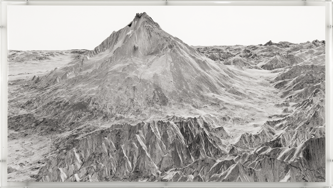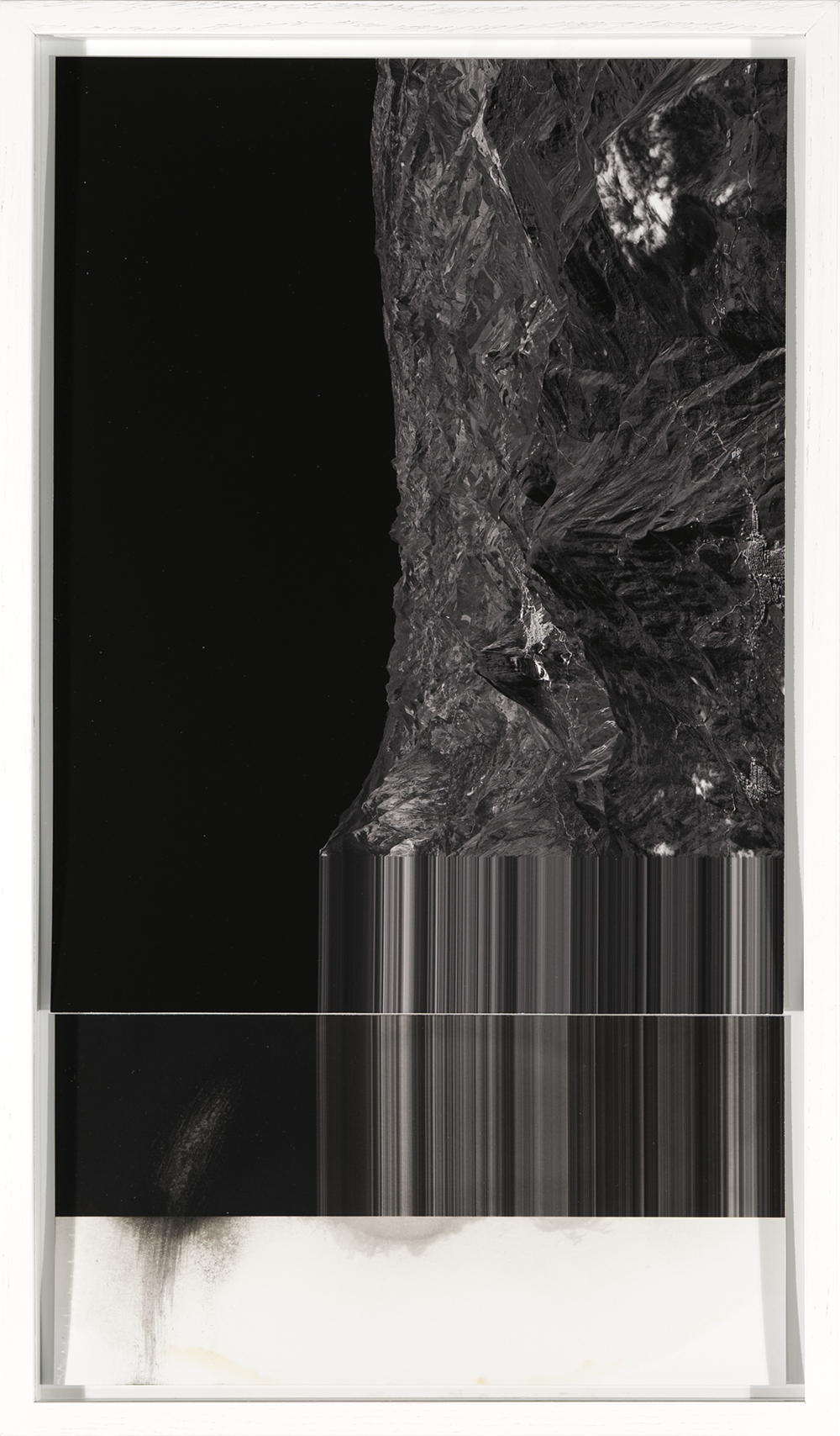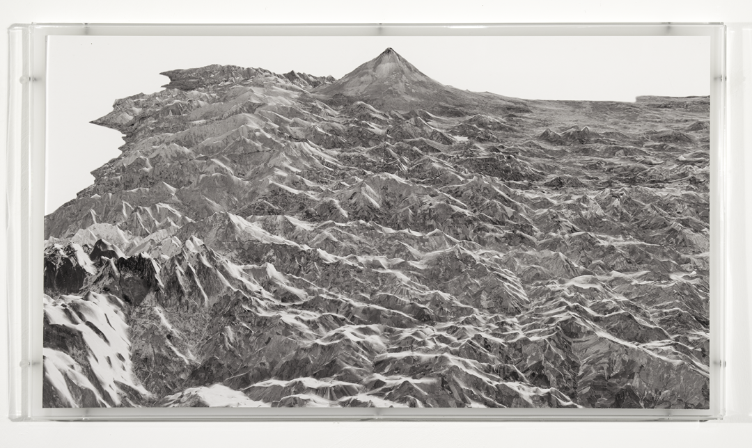 Le serie di lavori, denominate “ TTERRAE_side3, 2, 8 ”, mostrano l’osservazione aerea del paesaggio naturale, ripulito dagli elementi tipici della rappresentazione geografica (la foto-cartolina per intederci), che inneggiano alla bellezza dei luoghi caratteristici, esaltando in egual misura gli elementi di pregio naturalistico. Pertanto, le immagini generate con la fotogrammetria digitale satellitare, diventano lo strumento visivo che ridetermina arbitrariamente le altezze - volutamente sospinte verso l’alto - e le distanze - non più misurabili, diventano viaggi temporali a ritroso nei ricordi personali dell’autore. Come il personaggio del dott. Fileno di Luigi Pirandello, che osservava le cose del mondo attraverso un cannocchiale rivoltato: “si poneva idealmente nell’avvenire per guardare il presente, e lo vedeva come passato”, tutti i paesaggi di “TTERRAE” evidenziano prospettive innaturali, contrarie, deframmentate e monocrome. Nello stesso tempo l’osservatore, colui che guarda a distanza, diventa speculare, immagine riflessa a quella depositata nelle teche. All’interno, c’è il tentativo di un approccio pragmatico alla forma per limitare l’utilizzo dello strumento digitale, sovrapponendogli in parte o in toto, la gestualità del segno e dello sporco, più o meno consapevolmente esercitata.