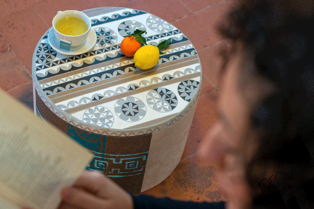Un arredo domestico pratico, dalle forme semplici che mediante stampe xilografiche personalizzate con grafiche che parlano della città manfreda e dell’immaginario proprio del marchio Riup, non passa inosservato.