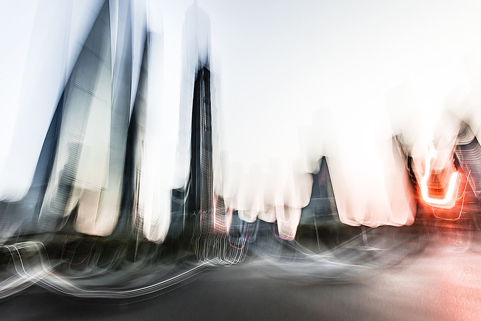 La città è uno scenario, come nel palco di una band di rock’n’roll, composto da trame, luci, spessori visivi, linee fluttuanti, pieni e vuoti generati da architetture verticali, presenze che affiorano come impulsi.