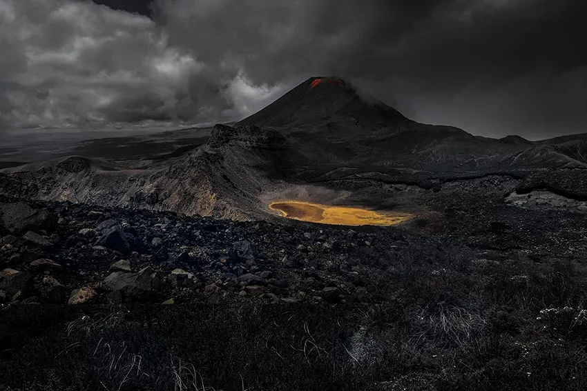 Francesco Allegretti articola la sostanza magmatica in una sequenza fotografica che condensa una tensione materica e produce visioni all’interno del paesaggio. Ogni immagine si dispone in forma di sostanza plastica, campo di energia attraversato dalla luce.