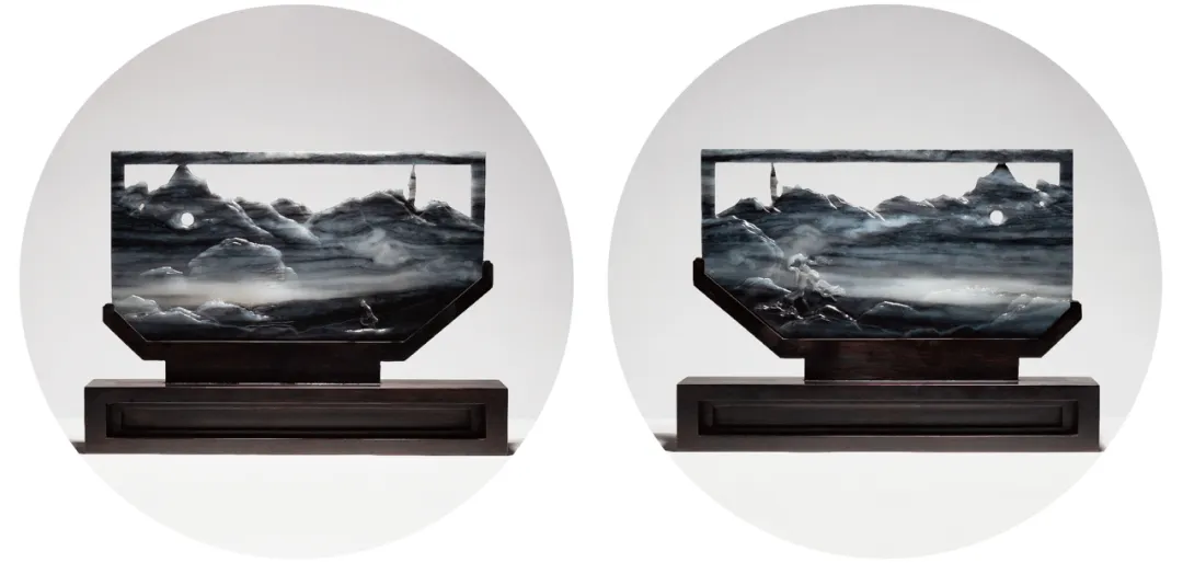 This series is defined by its deliberate "frames": architectural constraints that tame the stone's chaos. Within these bounded planes, raw material transcends its limits, while infinite imagination submits to disciplined form - a paradox carved in jade.