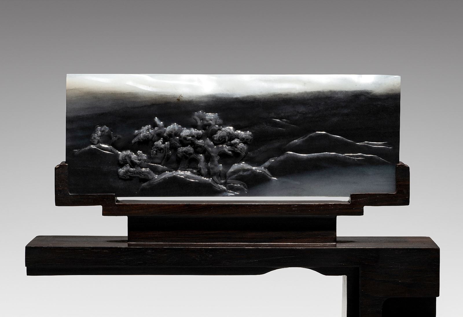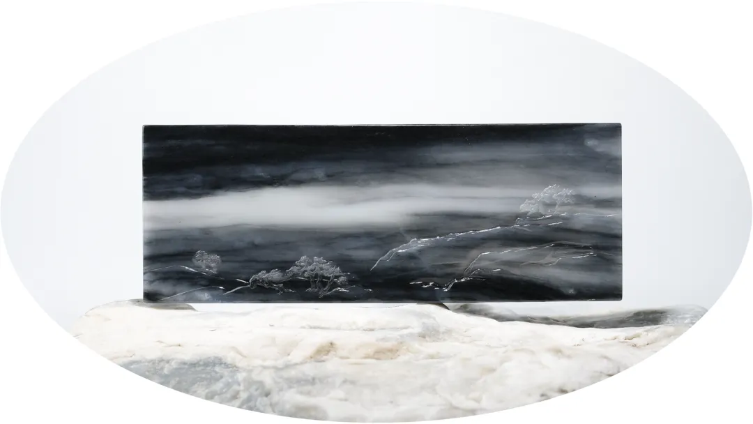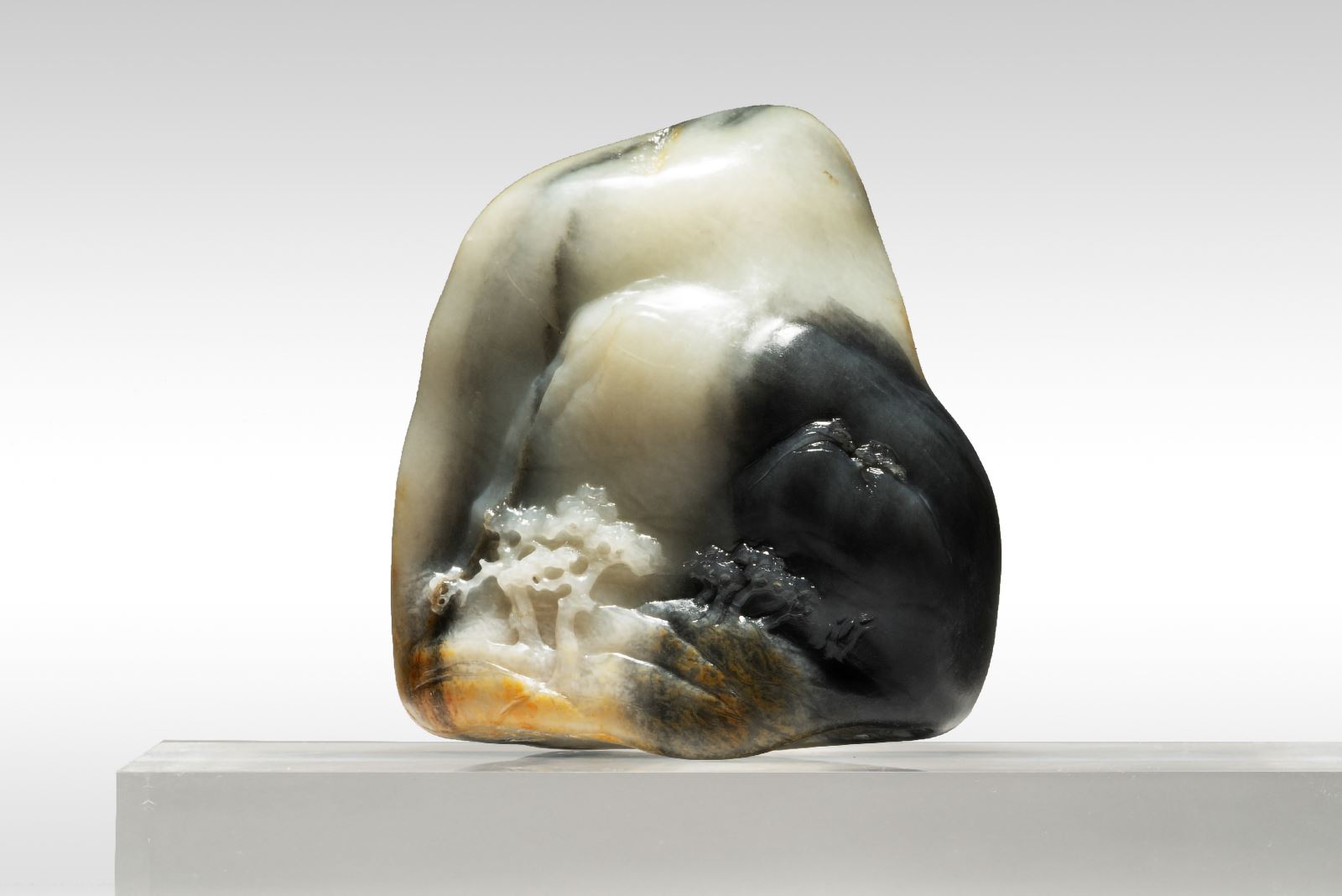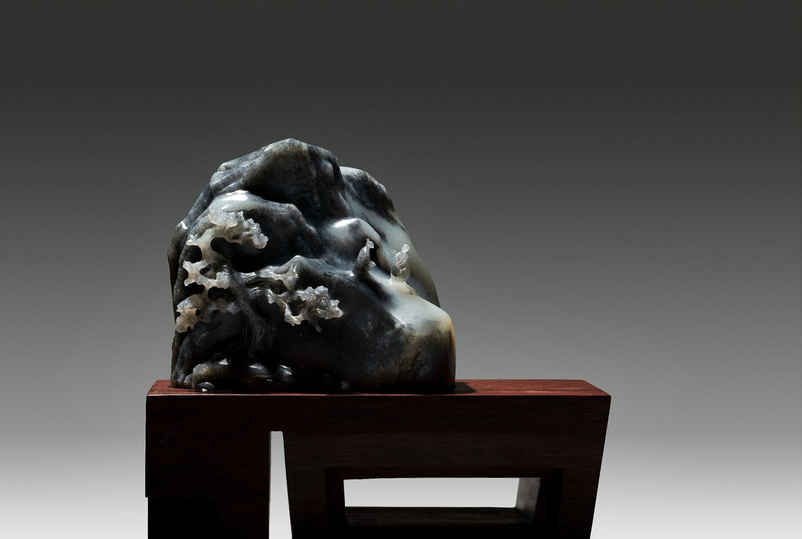 Here, the stone's natural ink stains transform into drifting cloud-veils, its fractures evolve into mountain contours. By yielding to the material's truth, we discover that sacred unity where object and observer become one - a meditation rendered in jade.