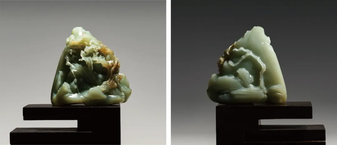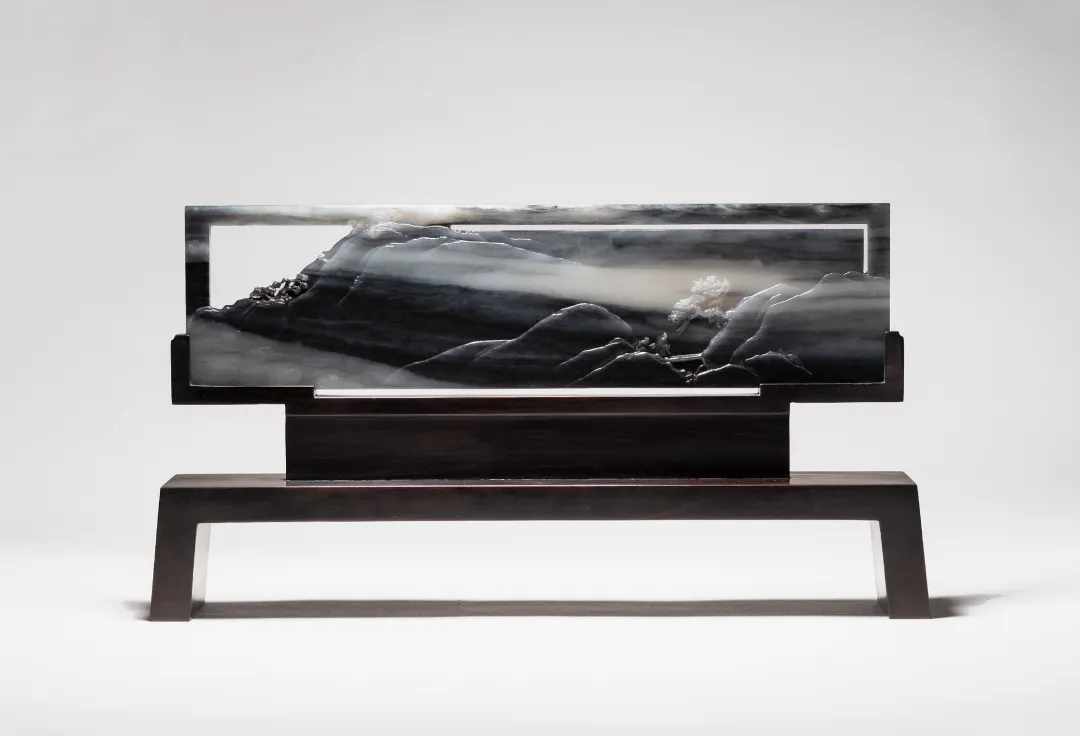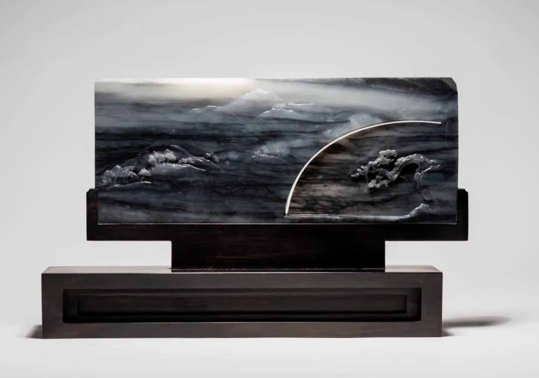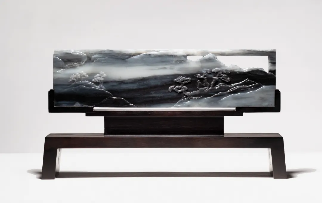 Departing from the formulaic: Cheng abandons the linear conventions of traditional carving, embracing an ink-wash sensibility of void and presence. Clouds and mountains breathe beyond carved borders with unbounded flow. The natural veining and incidental flaws of jade are transfigured into radiance and spirit, embodying the belief that “the uncarved surpasses the carved.”
