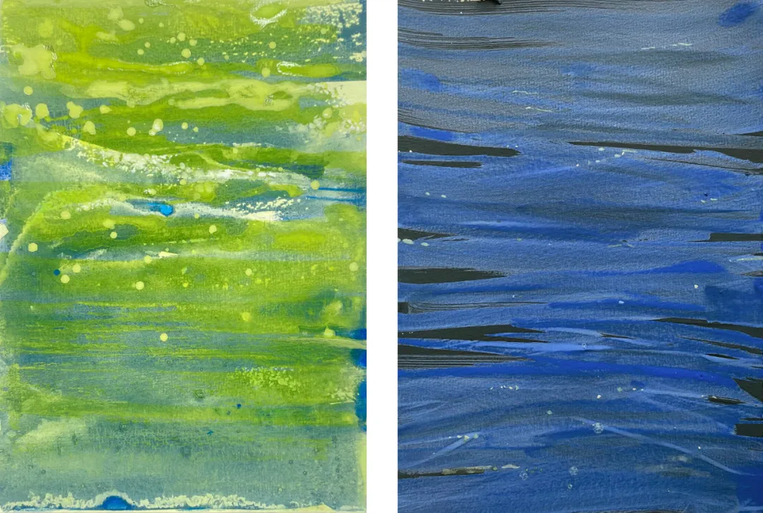 在过去的一年半里,我搁置了素描,确切地说是搁置了所有具象叙事的形式。我在小幅画面上快速挥洒,不带特定意图,只为侧耳倾听,任由不断生成的图像指引我去向。由此诞生了一系列“无向之景”,那是记忆深处失而复得的地点与感知的浮现。