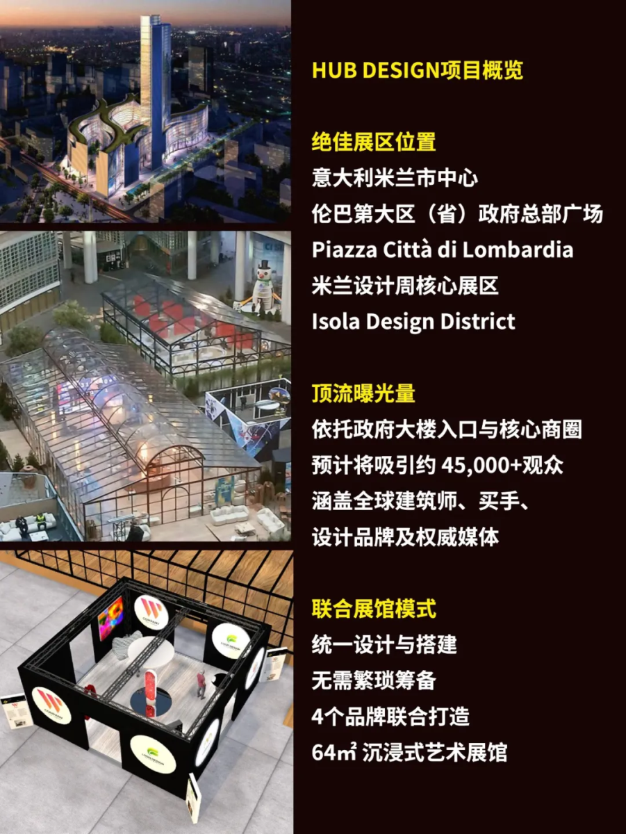 本项目采用 4 个品牌联合共创的策展模式,这不仅是一次产品出海展示,更是一场具有国际视野的品牌叙事。得益于这种创新的共享模式,仅需不到 12万 RMB,即可获得包含“交钥匙全包搭建”在内的米兰设计周核心展位。