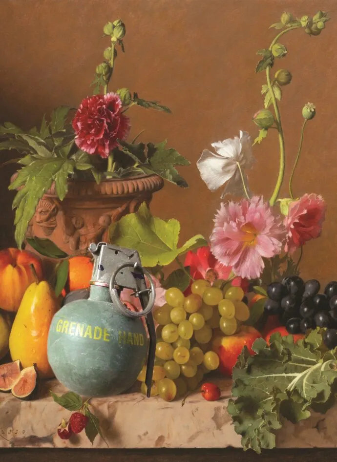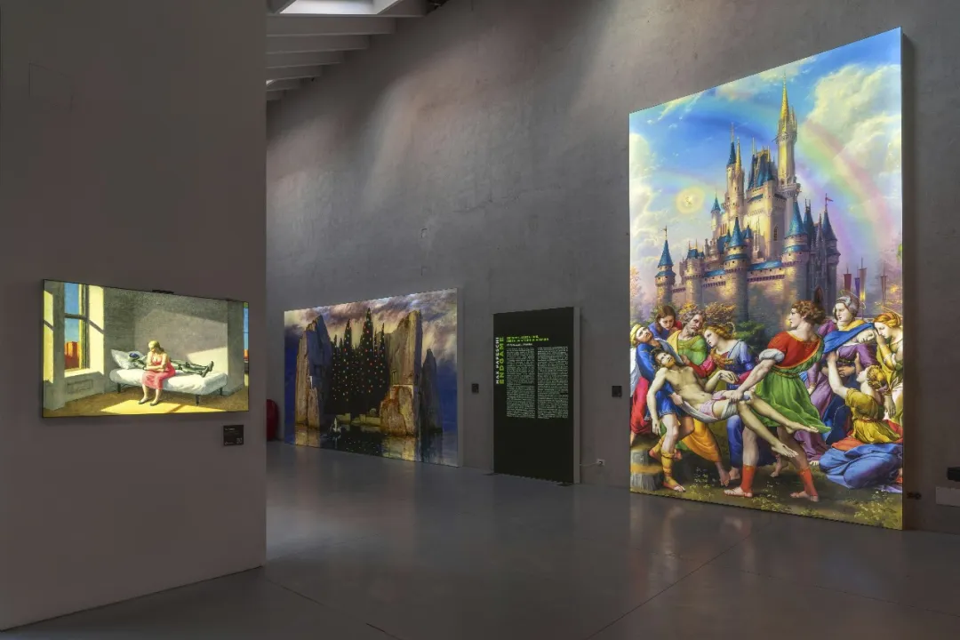 展出的作品围绕三个相互交织的主题展开:神圣作为西方文化中应对死亡的机制;技术作为回应当代孤独的方式,却同时构成一种虚假的答案;暴力则作为贯穿历史的持续性状态存在。古典图像、宗教意象、科技元素与大众文化在作品中并置,形成既具有吸引力又令人不安的视觉效果。这些作品并不直接进行批判,而是以冷静的方式呈现宏大叙事的失效。