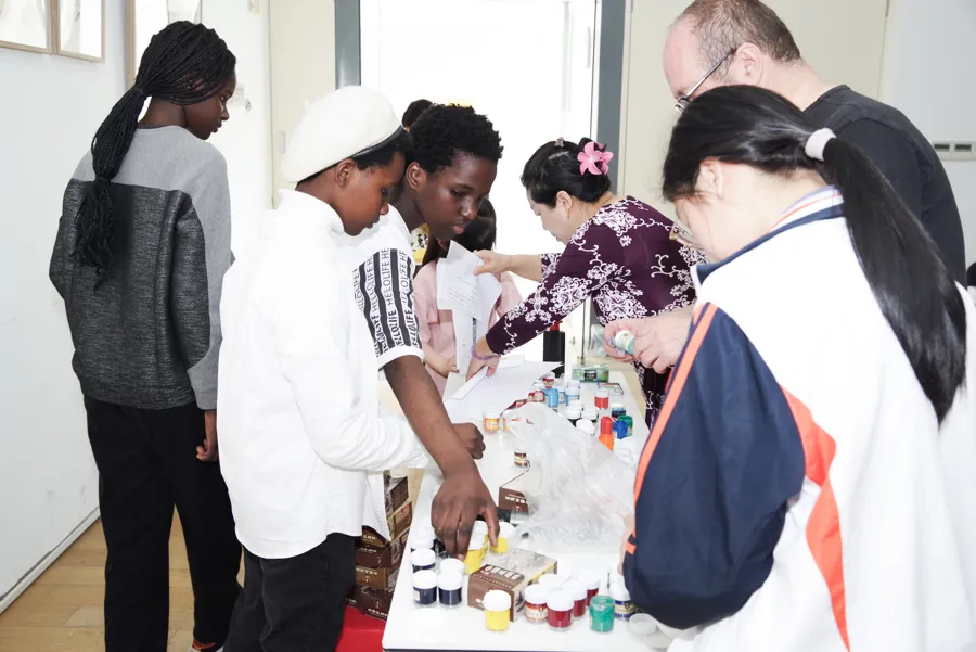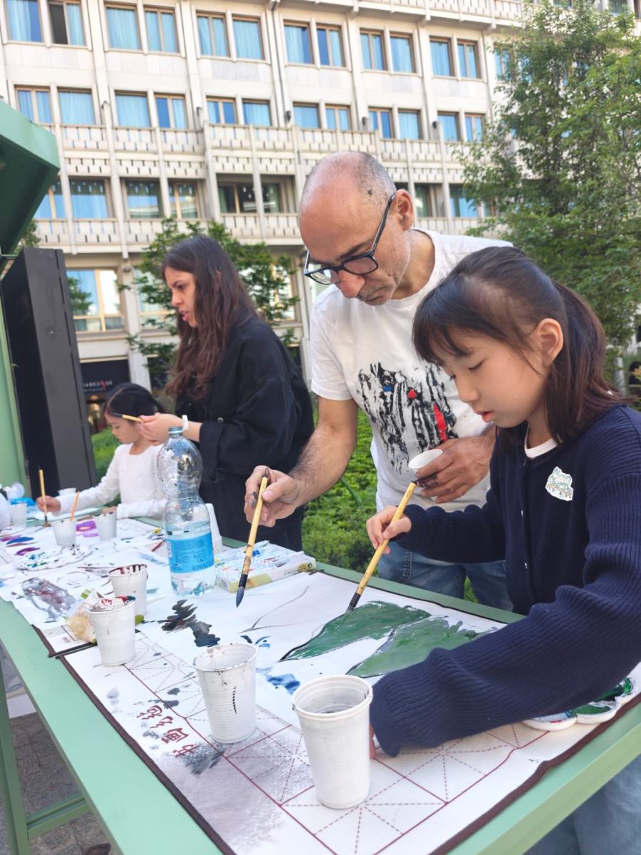 在两位艺术家的的现场指导下,米兰的孩子们用毛笔在长卷上绘出象征友谊与和平的图案,与万里之外的中国上海青少年隔空呼应,共同奏响一场跨越国界的艺术交流与和平对话。