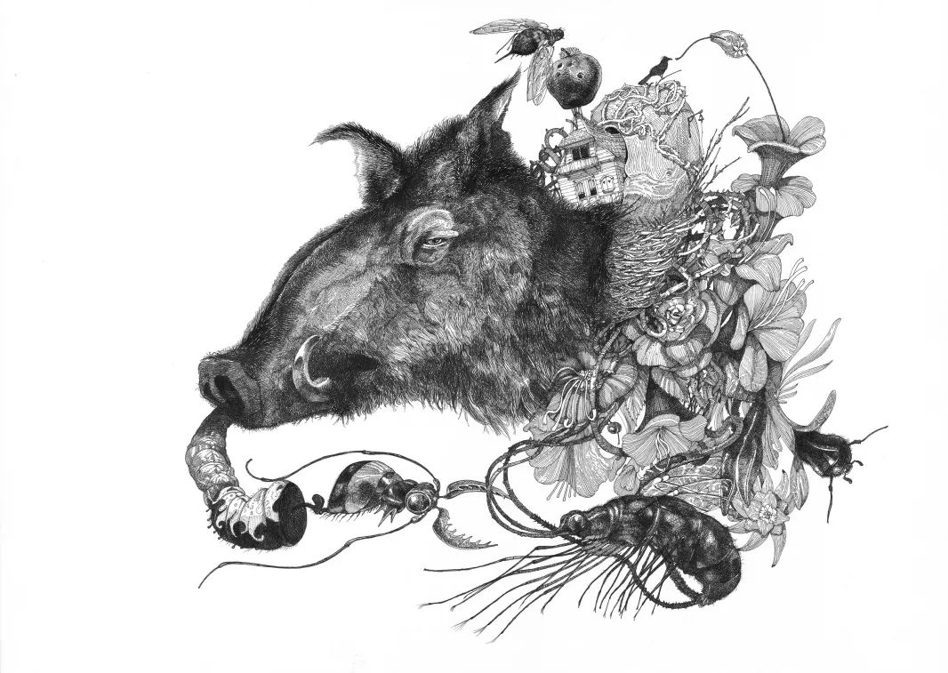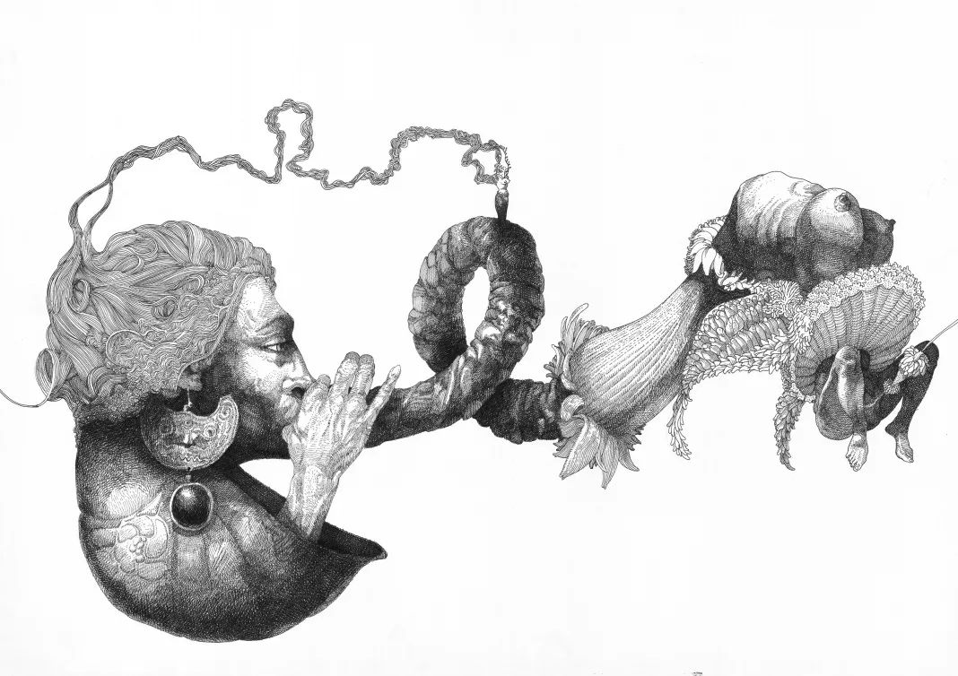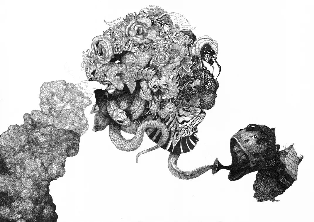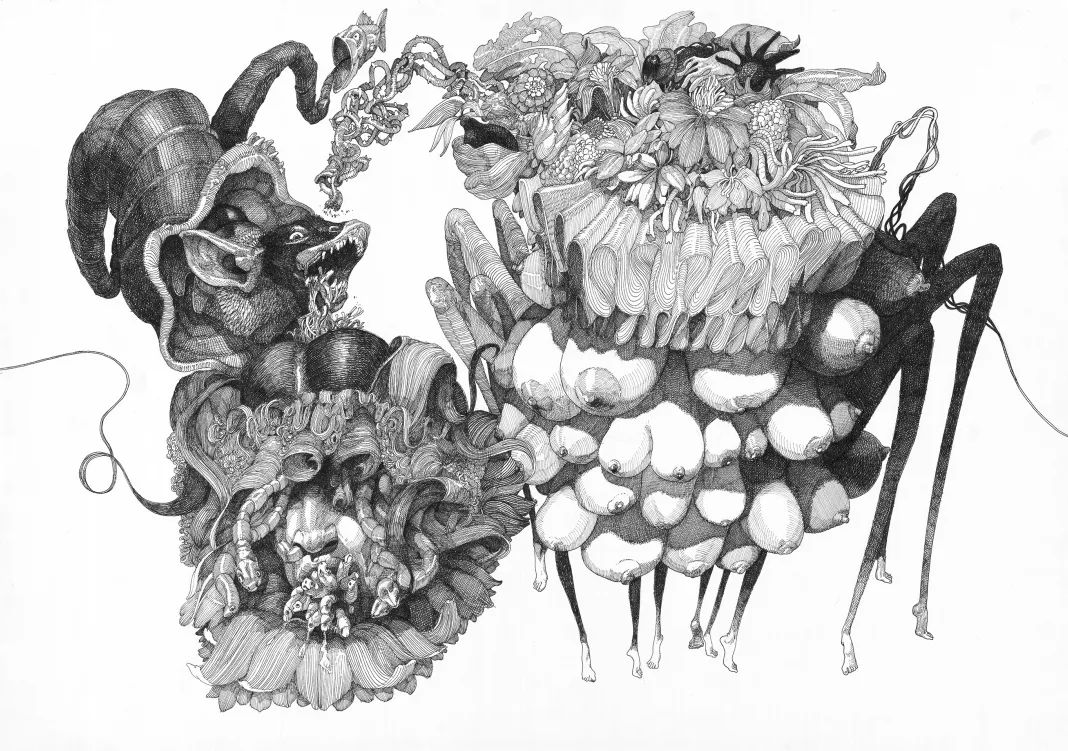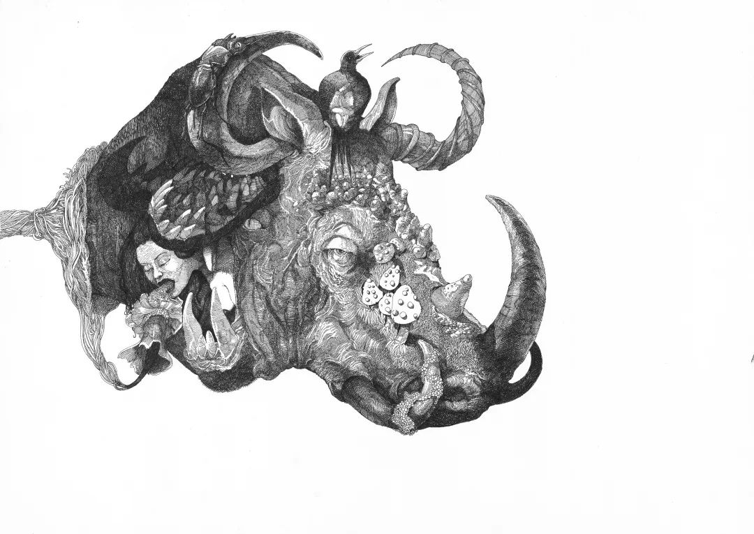 Nelle chine raffiguranti chimere, come nei “scketchbbook” convivono gli estremi in una con-sequenzialità atta ad unire pulsioni provenienti da vari stimoli, confluenti in un unico flusso di coscienza.