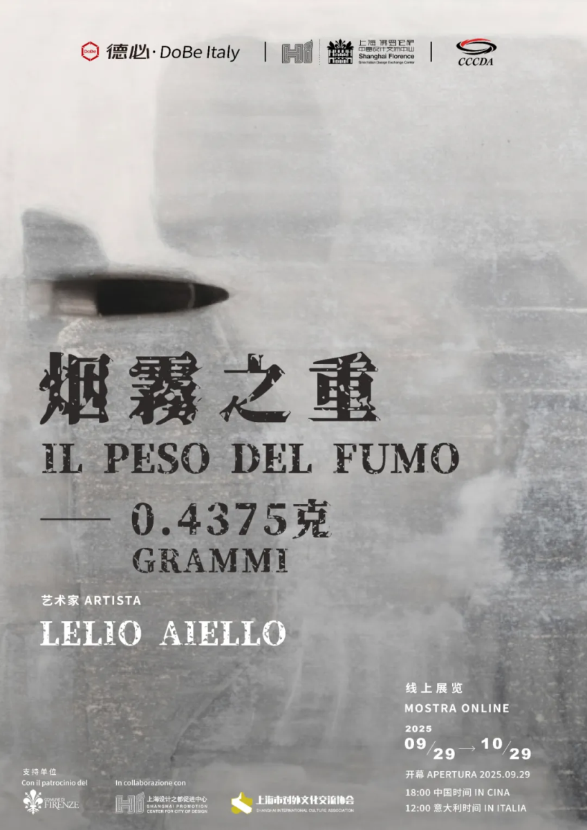 La mostra online "Il peso del fumo - 0,4375 grammi" dell'artista italiano Lelio Aiello, organizzata da DoBe Italia, Centro Sino Italiano di Design e Associazione per lo Sviluppo degli Scambi Culturali Internazionali (CCCDA), con il patrocinio del Comune di Firenze e il supporto dello Shanghai Promotion Center for City of Design e della Shanghai International Culture Association, è stata inaugurata alle ore 12:00 (ora italiana) del 29 settembre 2025.