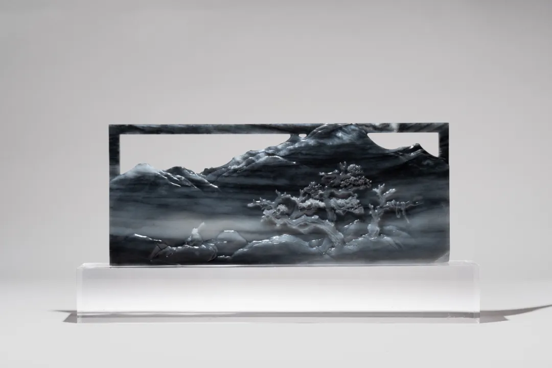 Departing from the formulaic: Cheng abandons the linear conventions of traditional carving, embracing an ink-wash sensibility of void and presence. Clouds and mountains breathe beyond carved borders with unbounded flow. The natural veining and incidental flaws of jade are transfigured into radiance and spirit, embodying the belief that “the uncarved surpasses the carved.”