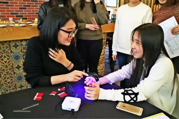 At the beginning, the branding director of Hedone, Loko shared with us useful knowledge of hand care. Are there any remedies for dry and rough hands? How to make our hands more beautiful? What to do with fragile nails and nail enamel? Is it an alarming bell if nails appear unhealthy? Any tips for selecting nail enamels? For all these troubles, Loko gave her professional advices along with a list of recommended hand care products. Besides, Hedone also prepared a surprising bonus for every guest -- manicure for free! Style of chic, sweet or cute? Hedone provided varieties of nail stickers that dazzled everyone's eyes.