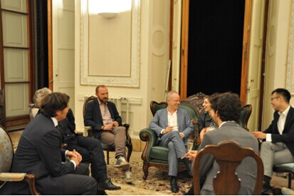 来访的艺术大师们首先听取了中心代表对于上海佛罗伦萨—中意设计交流中心的介绍。介绍中,大家首先一起回顾了两地政府在中心成立的过程中做出的努力以及对于这一跨国平台给予的厚望。接着通过实例,中心的工作人员向大家讲解了中心如何帮助两国文化创意产业进行对接交流,如何在文创领域为设计师和企业实现增值服务。最后由工作人员陪同,大家一起参观了中意设计交流中心对于诗特洛奇别墅艺术化、现代化的改造——通过巧妙的规划,精心的修复,和谐地将东方元素糅合到西方古典建筑中,使这座400多年的文物古迹焕发出新的活力。